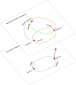 The inference of gene regulatory networks, which is sometimes also referred to as reverse engineering is the process of estimating the direct physical (biochemical) interactions of a cellular system from data. That means one aims for identifying all molecular regulatory interactions among genes that are present in an organism to establish and maintain all required biological functions characterizing a certain physiological state of a cell. Depending on the data used for inferring the network, which, principally, may either come from DNA microarray, RNA-seq, proteomics or ChIP-chip experiments, or combinations thereof, the biological interpretation of an ‘edge’ in these networks is dependent thereon. For gene expression data, inferred interactions may preferably indicate transcription regulation, but can also correspond to protein-protein interactions. Due to the causal character of these networks, which ensures a meaningful biological interpretation, the genome-wide inference of gene regulatory networks holds great promise in enhancing the understanding of normal cell physiology, and also complex pathological phenotypes.